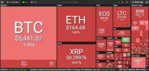According to the Coin360 online platform, Bitcoin (BTC) lost 1.35% in the past 24 hours. The price at the time of writing is $5441 per coin.