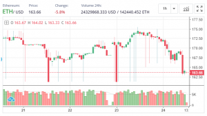 Over the past 24 hours, according to the p2pb2b exchange, Ethereum fell by 5.7%. The rate of the coin is $163.